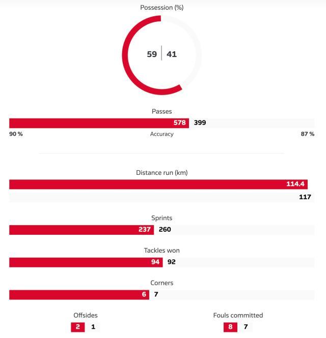 主场7比0波鸿,预期进球5.32,射门26次,射正15次。
